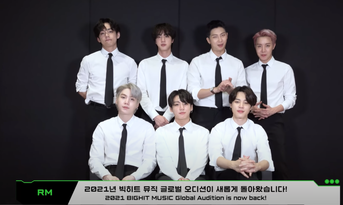 2021-10-18 BTS 2021 BIGHIT MUSIC GLOBAL AUDITION BTS youtu.be youtu.be BIGHITのオーディションの告知ですね いろんな分野での募集があるみたいです BTSに続く子たちがたくさんいないと またこのKPOPブームが廃れていくかもしれない なので素敵な宝物のような 才能の持ち主がたくさん来てくれるといいですね 偉大な彼らに続くのは簡単なことではないけれど それでも期待したいですね
